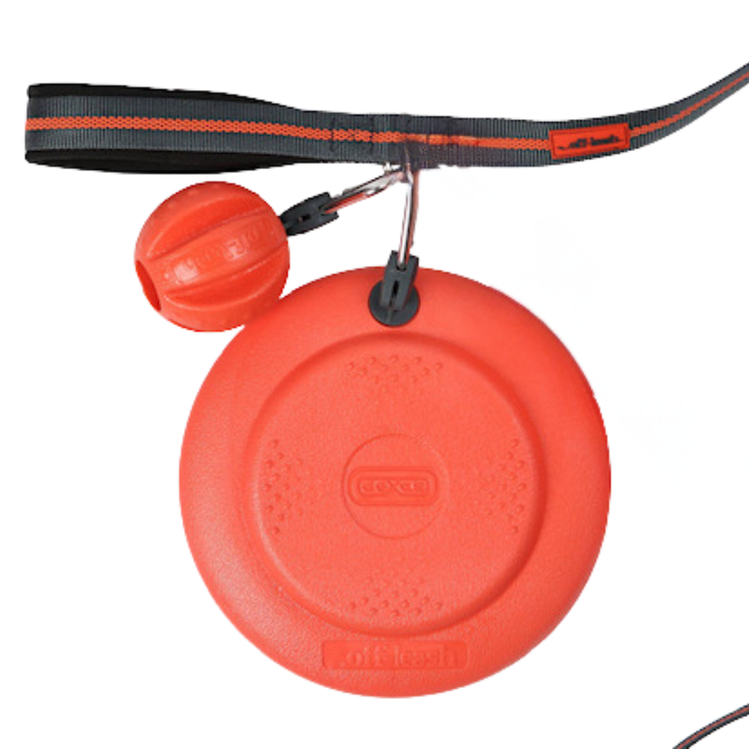 This unique and durable designed adventure dog leash and dog toy system offers the ability to attach toys to your dog's leash, making this the ultimate hands free and convenient option!